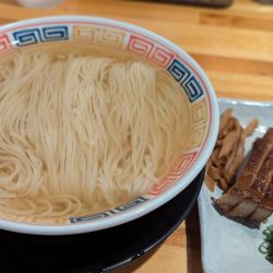 麺が細目の平打ち麺なんですが茹でて〆て再度湯通しし熱々にした麺を冷たいサンマ水にドボンしてサンマ水がやや熱を持ちご提供されます😁😁... 続きを見る